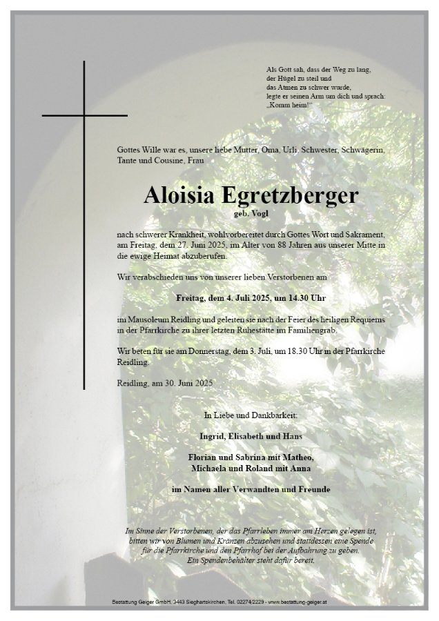 Wir möchten euch und der ganzen Familie unser inniges Mitgefühl ausdrücken und wünschen euch viel Kraft für die Zeit des Abschieds und der Trauer sowie viele schöne Erinnerungen an eure liebe Mama, die euch Trost spenden.