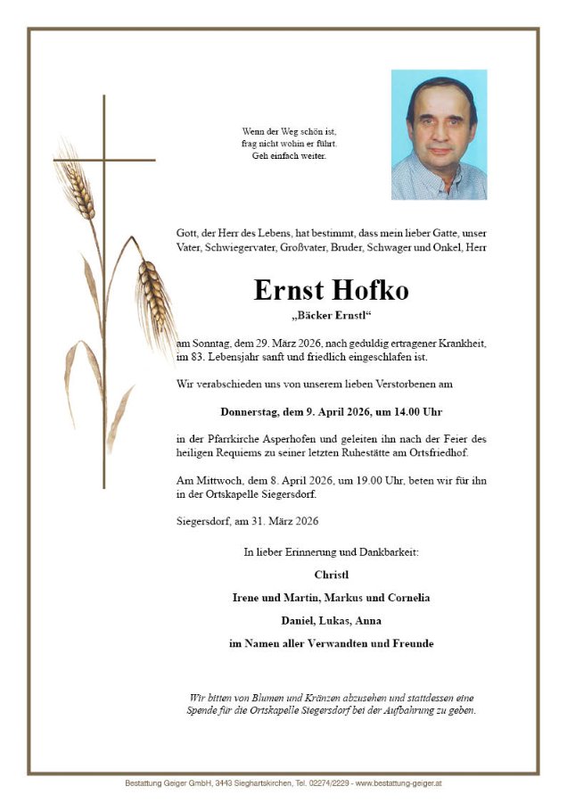 geboren am 4. Mai 1943 in Eggenburg gestorben am 29. März 2026 in Siegersdorf
