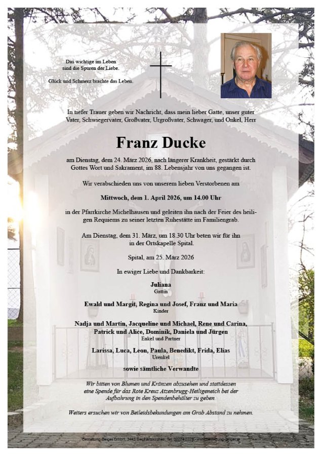 geboren am 3. Juli 1938 in Spital gestorben am 24. März 2026 in Paltram 12