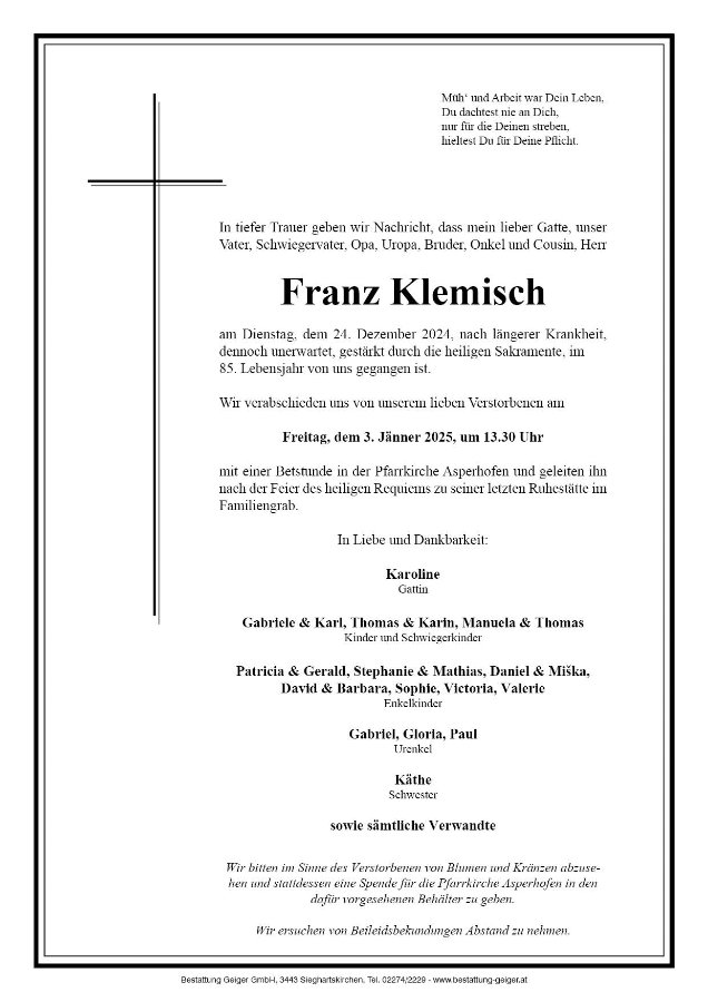 geboren am 16. August 1940 in Asperhofen gestorben am 24. Dezember 2024 in Asperhofen