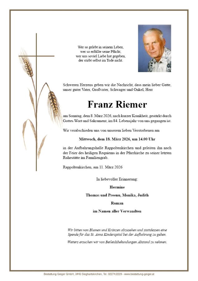 geboren am 21. April 1942 in Rappoltenkirchen gestorben am 8. März 2026 in St.Pölten