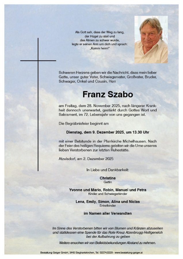 im Namen der Marktgemeinde Michelhausen, aber auch in meinem persönlichen Namen, möchte ich mein tiefes Mitgefühl und meine aufrichtige Anteilnahme ausdrücken und in diesen traurigen Tagen viel Kraft, Trost und Zuversicht wünschen.