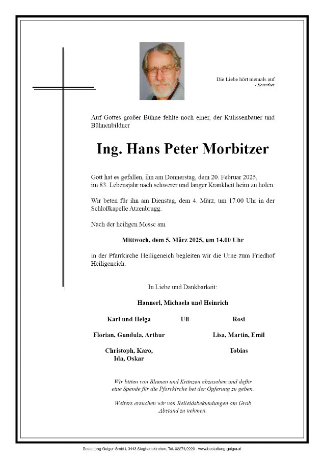 Sehr geehrte Frau Morbitzer,Ihnen und Ihrer Familie unsere aufrichtige Anteilnahme.Gerda und Peter Kiss Arbeitskollegen aus der Nowak-Ära