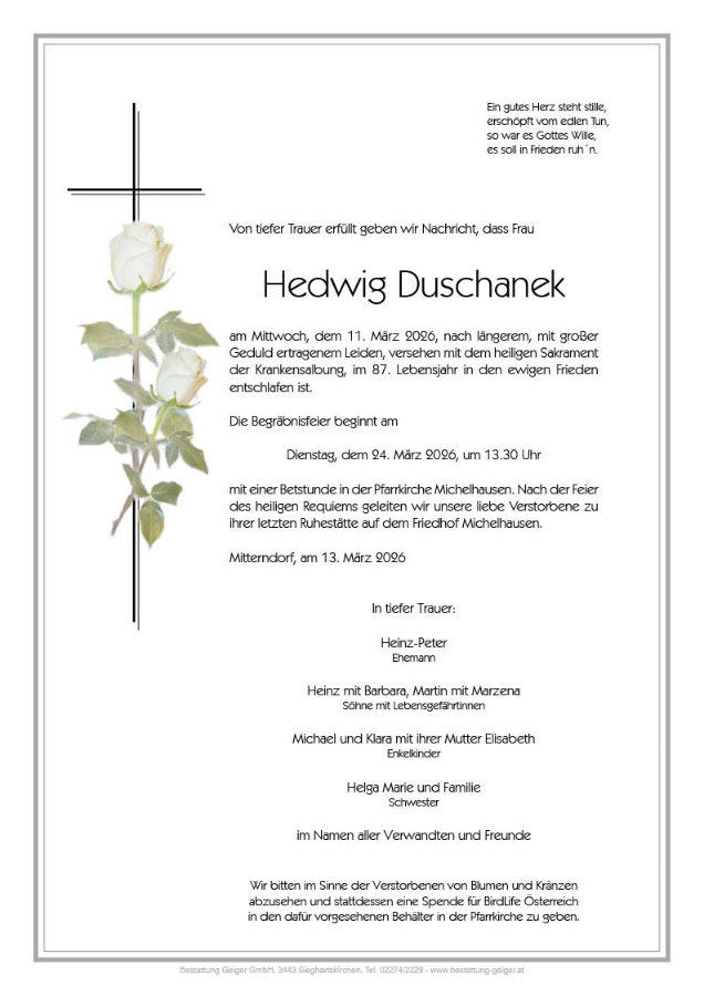 im Namen der Marktgemeinde Michelhausen, aber auch in meinem persönlichen Namen, möchte ich mein tiefes Mitgefühl und meine aufrichtige Anteilnahme ausdrücken und in diesen traurigen Tagen viel Kraft, Trost und Zuversicht wünschen.