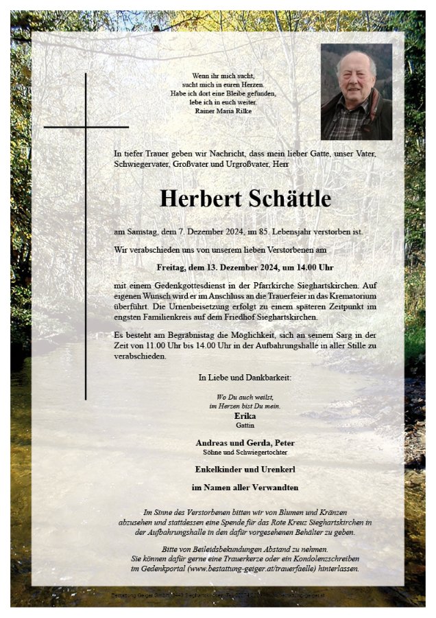 geboren am 24. Juni 1940 in Sieghartskirchen gestorben am 7. Dezember 2024 in Sieghartskirchen