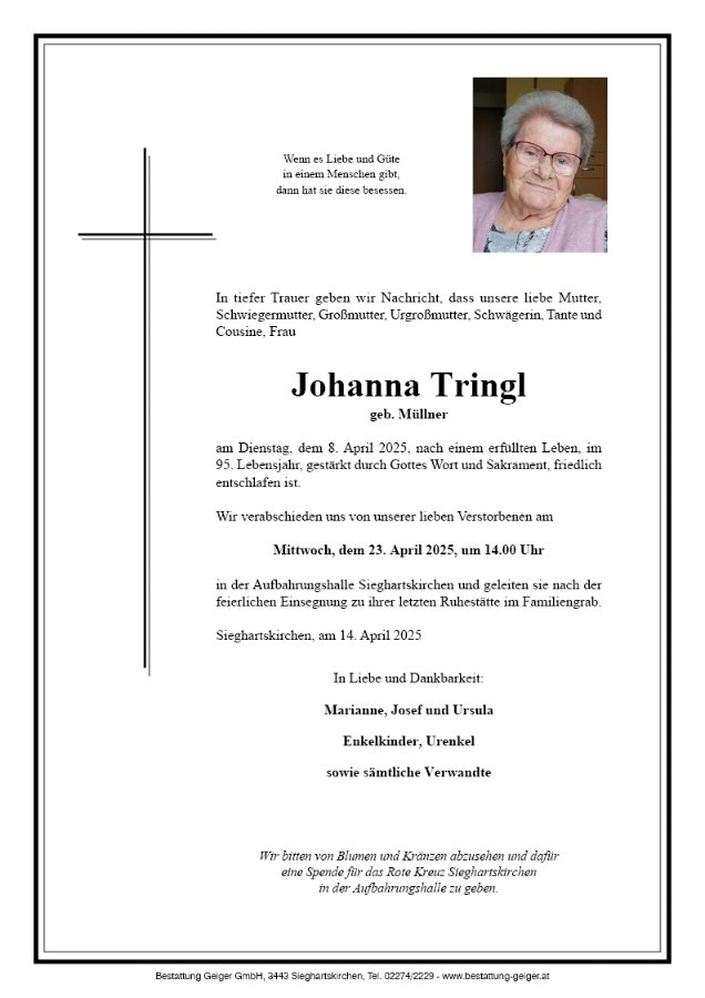 Meine Liebe Frau Tringl ..Im Praktikum warst du mein Liebling. Wie ich dich besuchen gekommen bin, hast du gesagt " mein Mädchen ist gekommen" das werde ich nicht vergessen. Ich werde dich immer in Erinnerung behalten .. <3