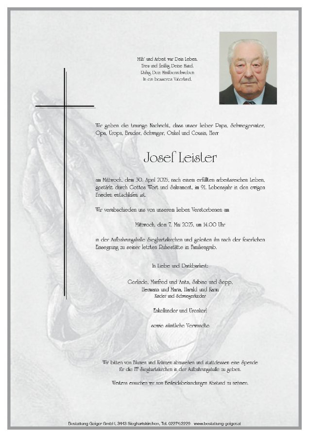 Trauerfeier, Aufbahrungshalle Sieghartskirchen