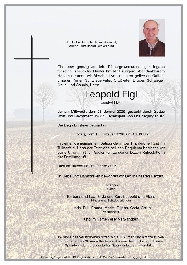 geboren am 4. Juli 1939 in Rust im Tullnerfeld gestorben am 28. Januar 2026 in Klosterneuburg