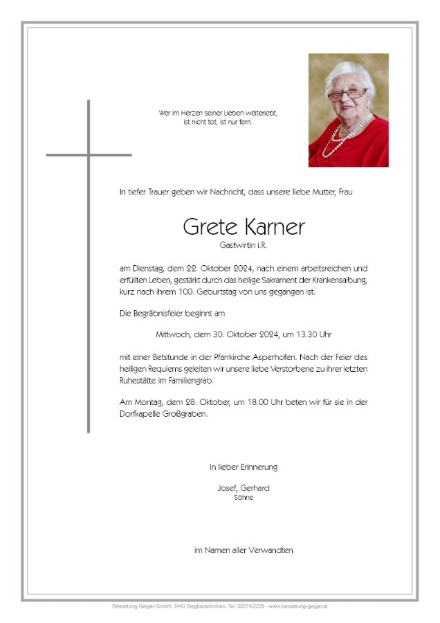 geboren am 4. Oktober 1924 in Kirchberg a.d.Pielach gestorben am 22. Oktober 2024 in Tulln an der Donau