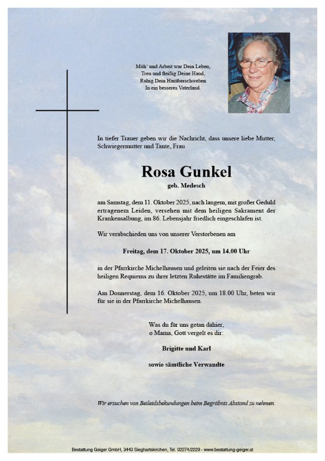 Viele schöne Reisen konnte ich mit Dir, liebe Rosa, unternehmen. Nun hast Du Dich auf Deine letzte Reise begeben, auf der Dich Gottes Engel liebevoll begleiten mögen. Danke nochmal für die Urlaube, die wir gemeinsam verbracht haben.