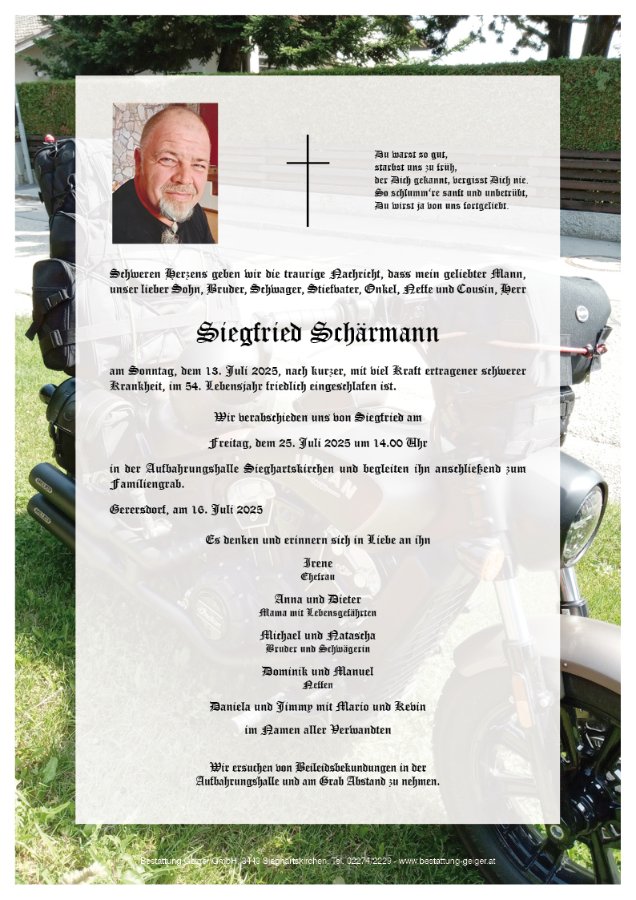 Unser aufrichtiges Beileid an die Trauerfamilie