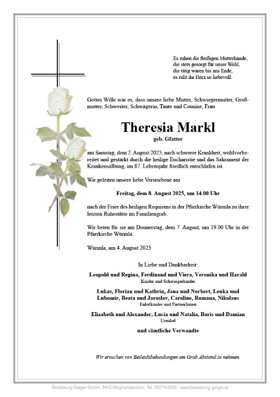 Aufrichtige Anteilnahme. Maria Schmid